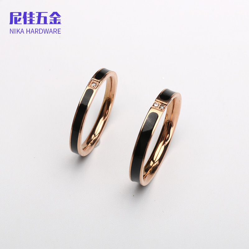 [Clearance Special] Cross-border Hot Drops of Glue Micro Diamond Couple Stainless Steel Ring Rose Gold Internet Red Ring
