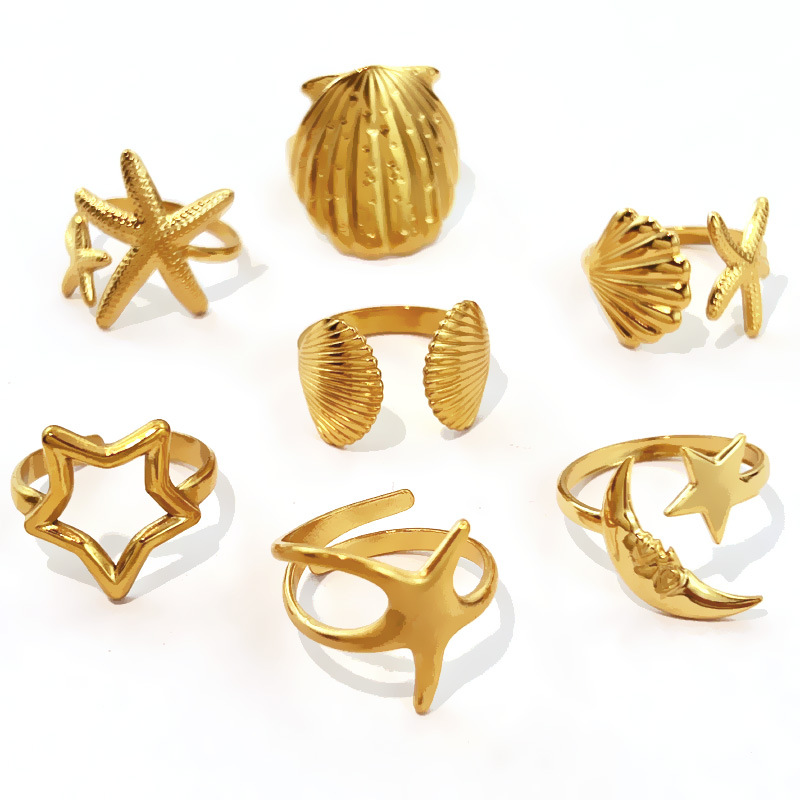 European and American Fashion Cross-Border Stainless Steel Rings for Women, Beach Starfish Design, Men's Titanium Steel Rings, Non-Fading Jewelry