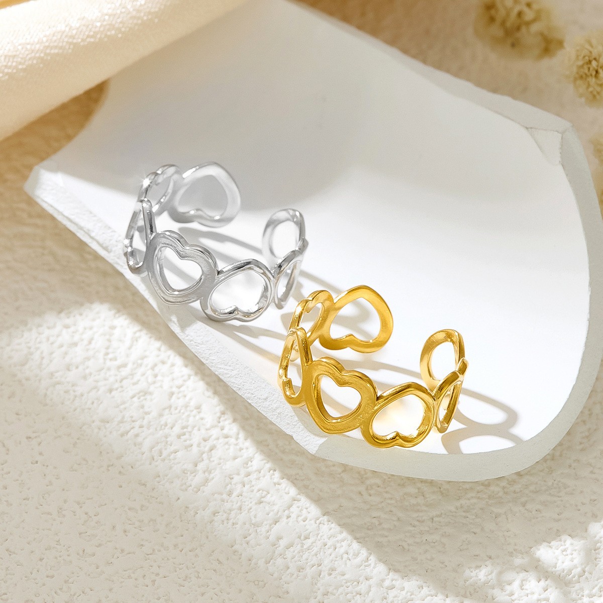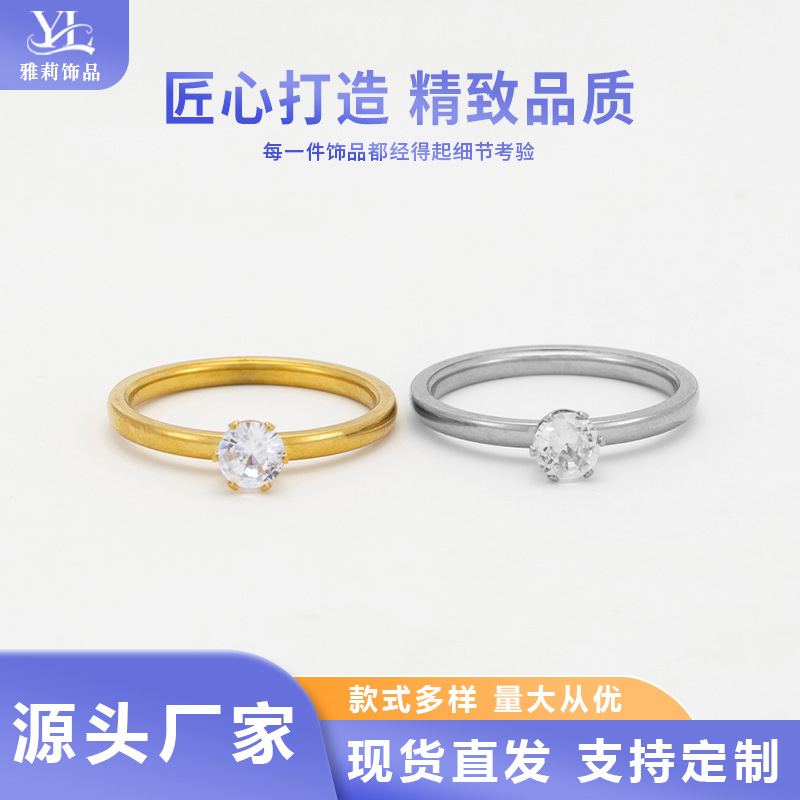 Cross-Border European and American Fashion Niche Women's Diamond-Encrusted Stone Pair of Rings 18K Gold Stainless Steel Plain Ring Trendy Hand Jewelry
