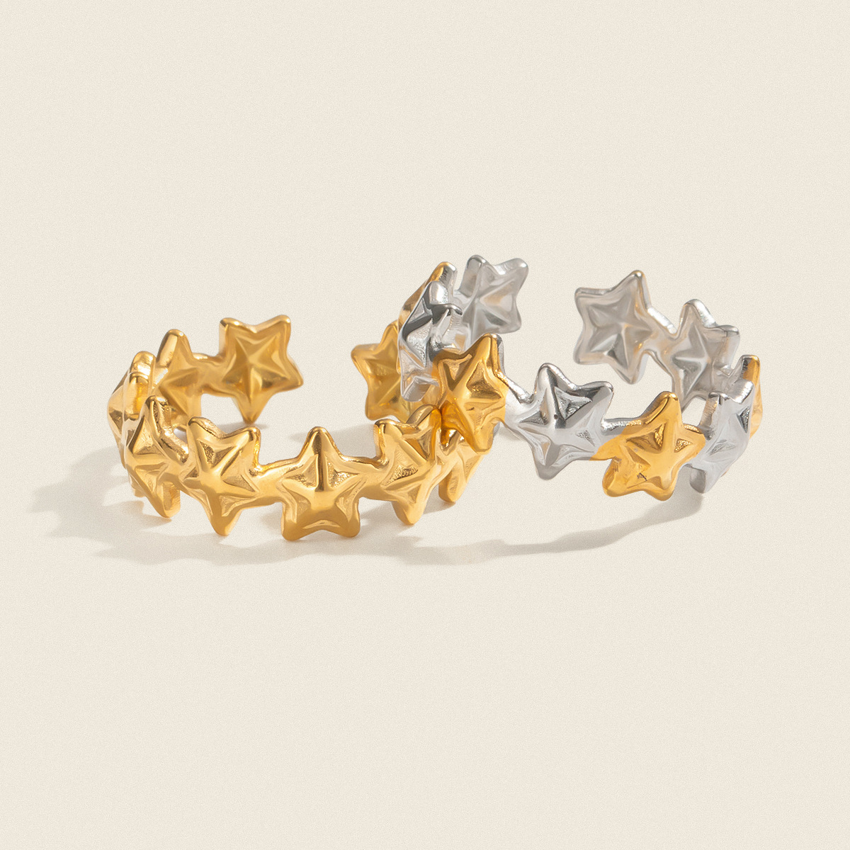 Xia Ling Simple and Stylish Mini Five-Pointed Star Color-Blocked Open Ring Stainless Steel Vacuum-Plated 18K Gold Versatile Jewelry