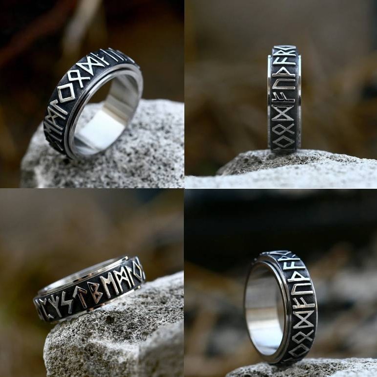 Longrui Cross-Border Hot-Selling Nordic Style Viking Text Stainless Steel Rotatable Retro Men's Black Fashion Ring