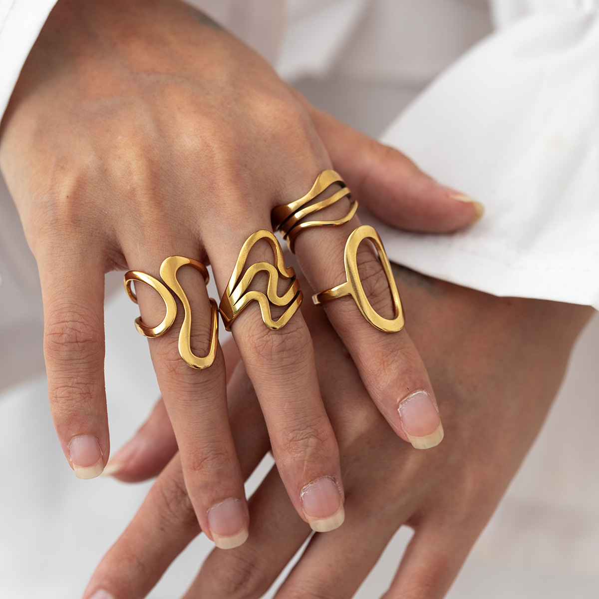 Cross-Border Stainless Steel Rings for Women, Exaggerated High-End Style, Ins Rings, Geometric Irregular Jewelry, Accessories