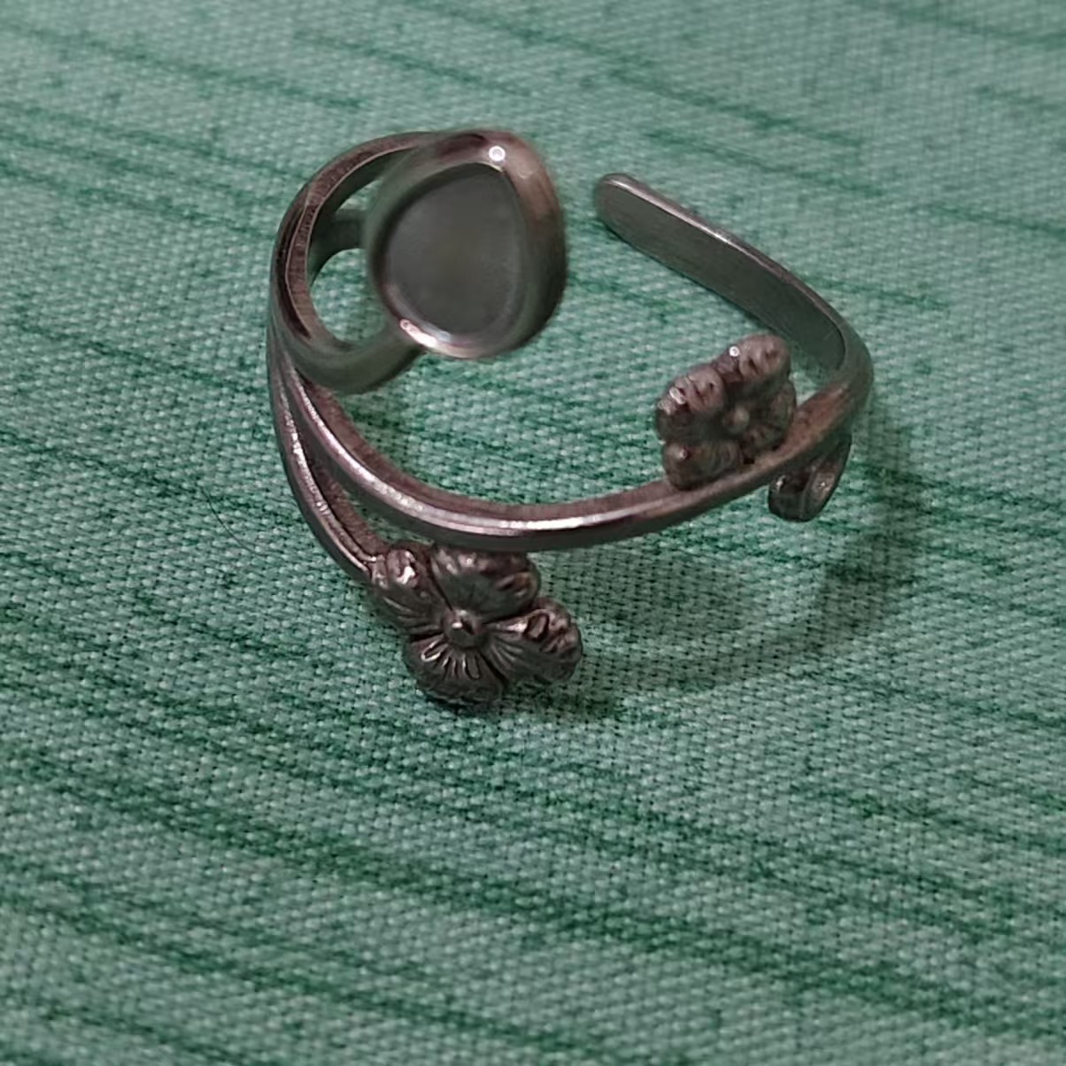 Omaca Ins Style Simple Natural Stone Tree Pattern Ring Stainless Steel European and American Cross-Border Non-Fading Index Finger Ring