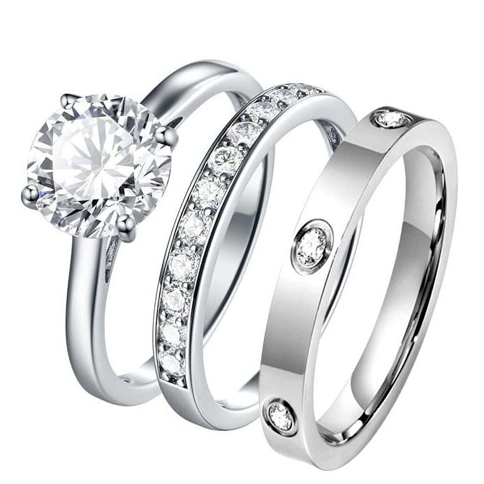 Nihon High-End Popular Diamond-Encrusted Titanium Steel Couple Set Ring Cross-Border Versatile Accessible Luxury Niche Jewelry Wholesale