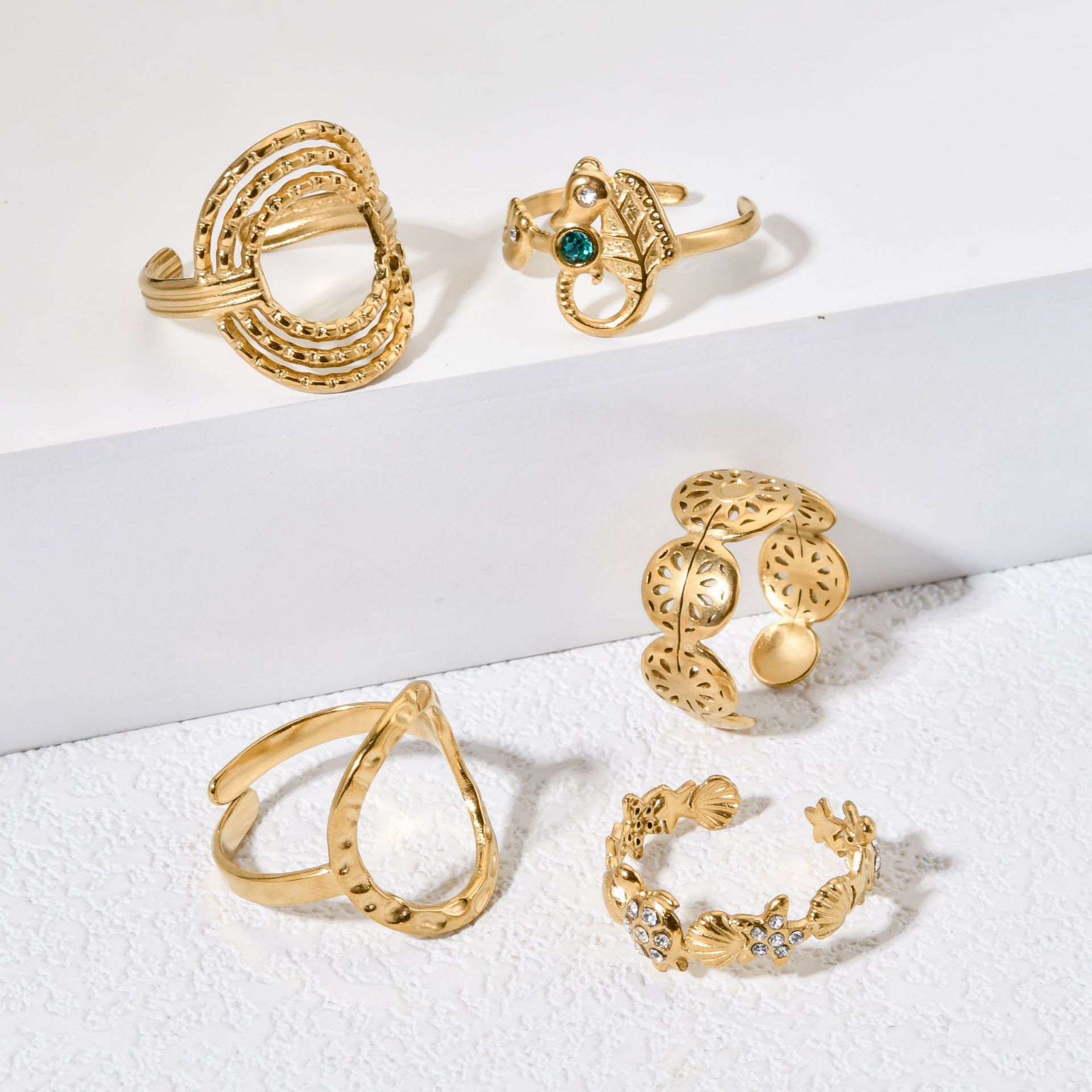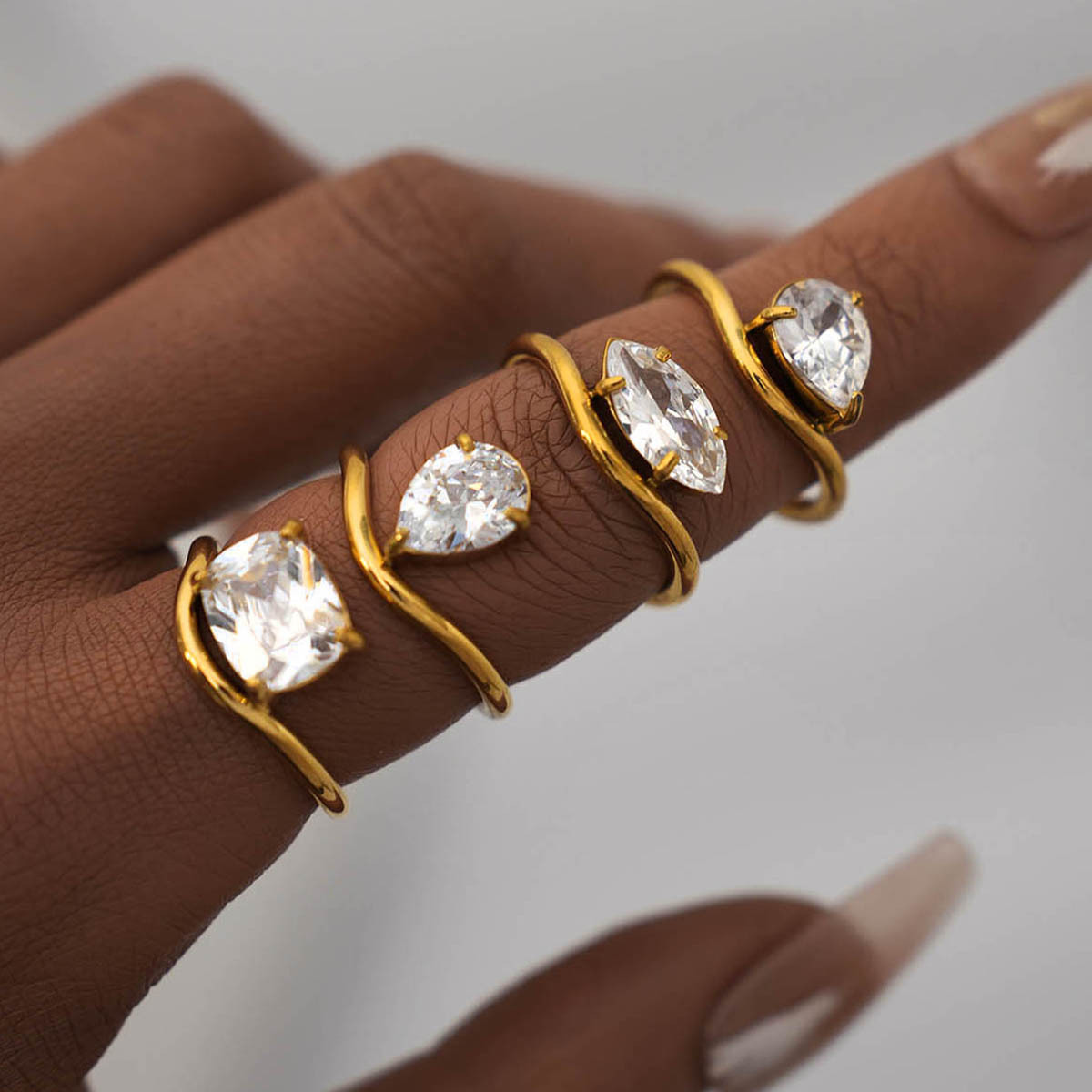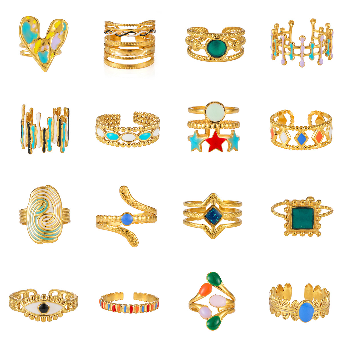 European and American Ins Style Geometric Oil Drop Open Ring Women's Fashion Versatile 18K Gold-Plated Asymmetrical Stainless Steel Ring