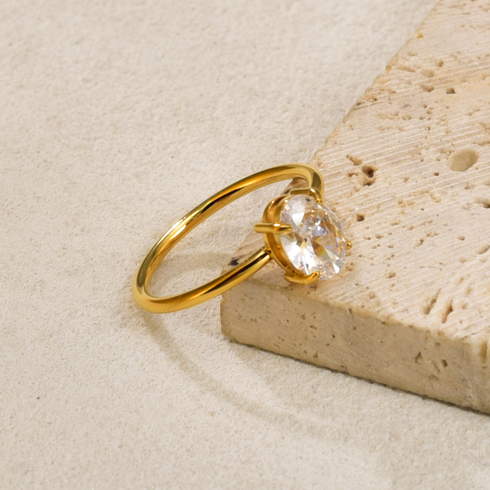 J83 Wholesale European and American Light Luxury Personalized Design Single Oval Diamond Ring Women's Fashion Casual Stainless Steel Ring