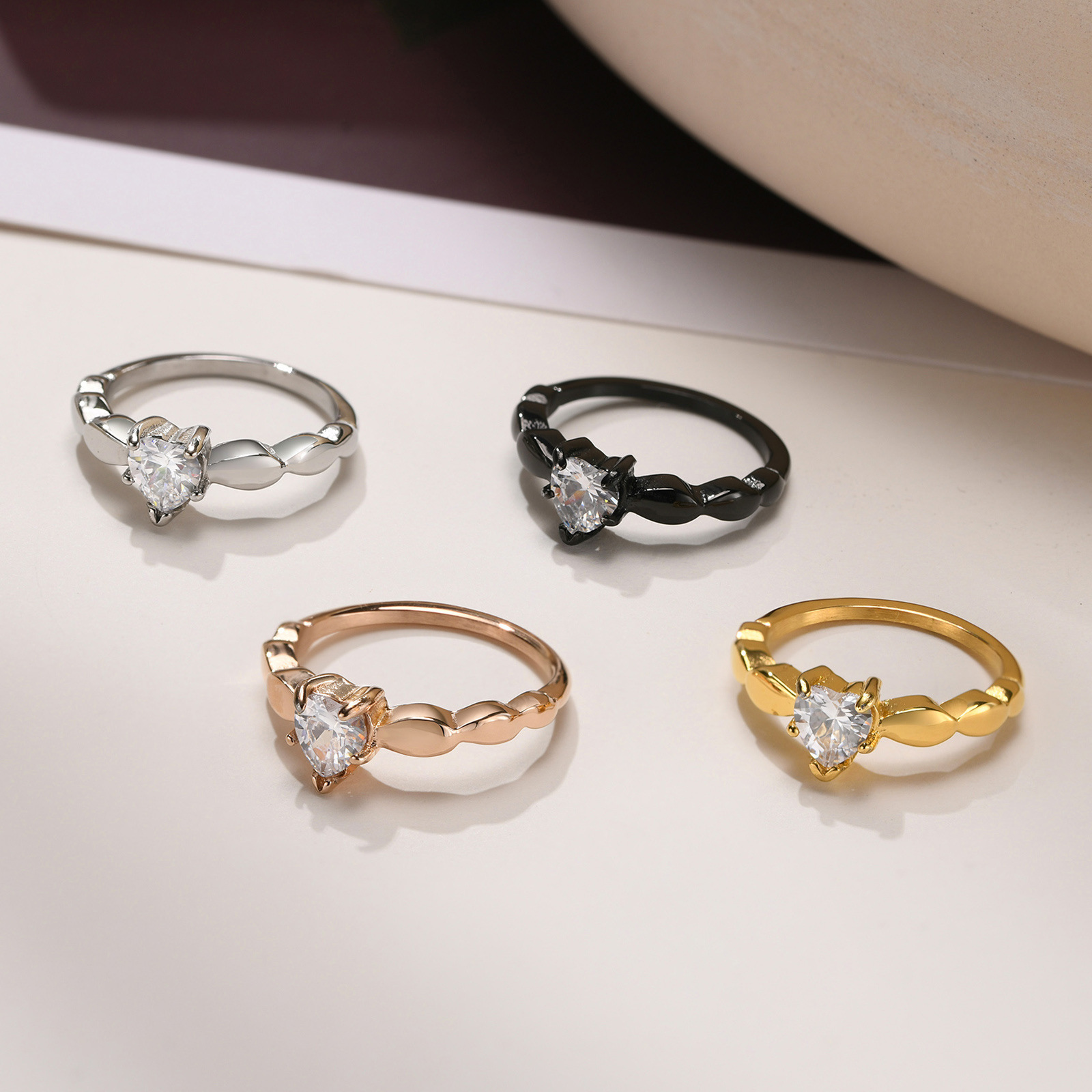 Women's personalized ring stainless steel heart-shaped zircon casting ring black gold simple ring RC-414