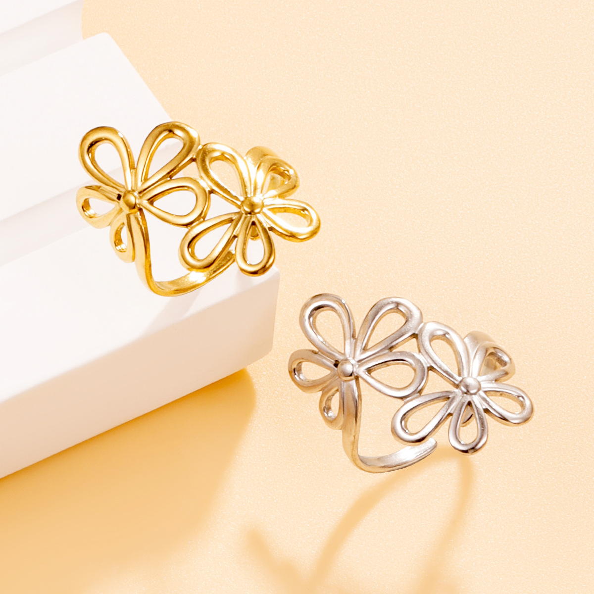 Stainless Steel Jewelry Sweet Versatile Hollow Rose Flower Ring Fashion Open Floral Ring Best Friend Gift Hand Accessory