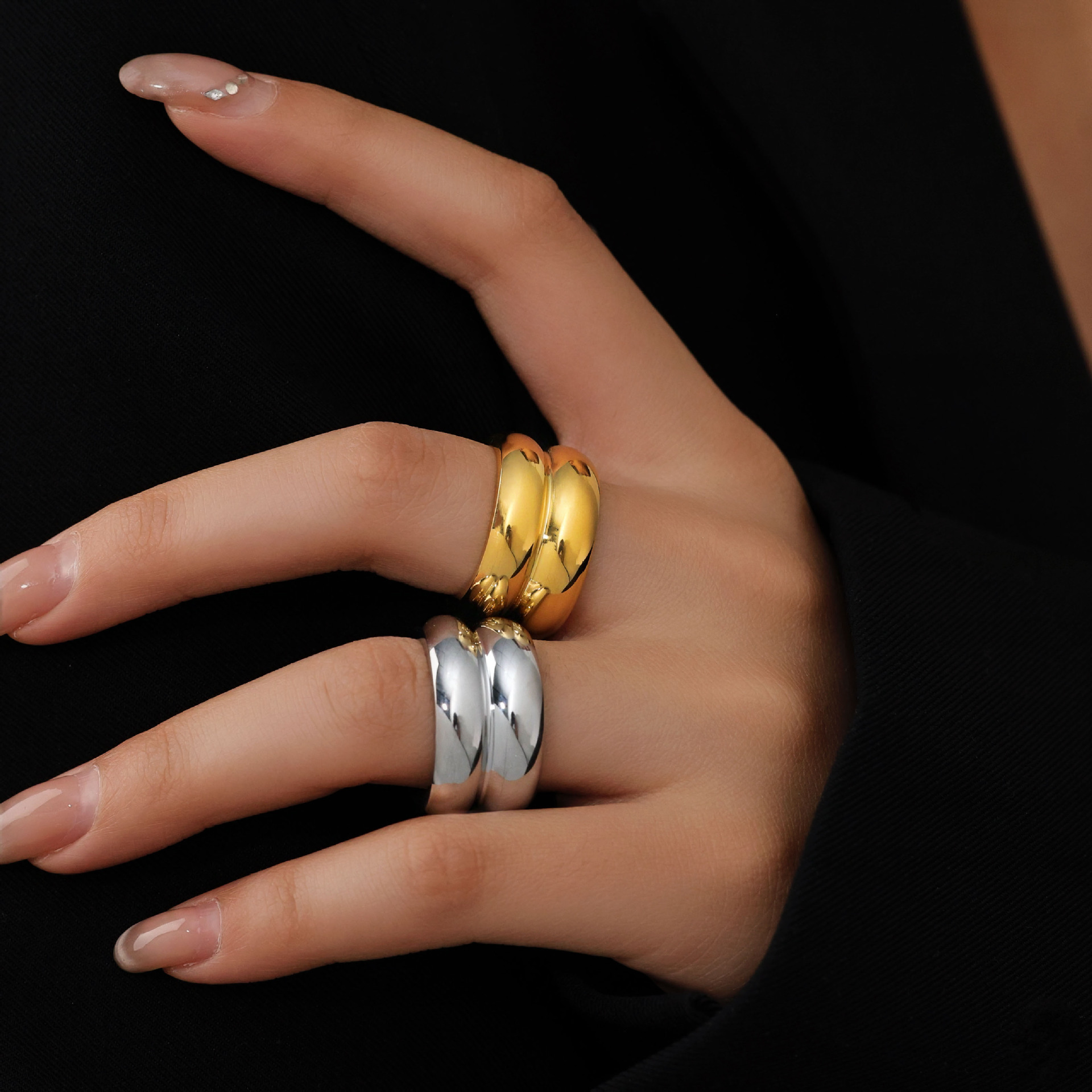 Jieding European and American Stainless Steel Geometric Opening Ring High-grade Sense Exaggerated Ring Titanium Steel Hand Jewelry Cross-border rings