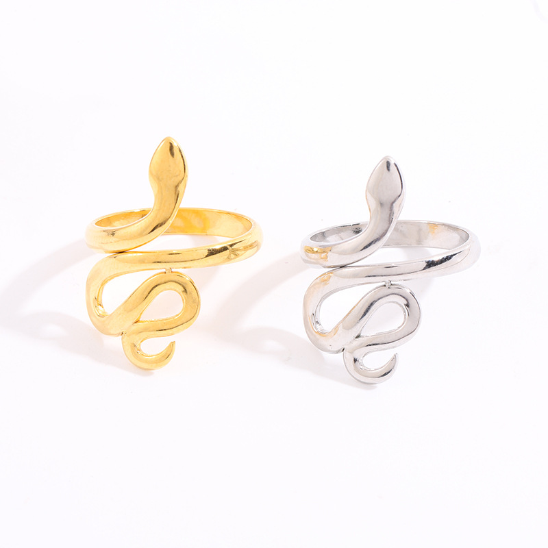 European and American Ins Design Titanium Steel Ring Female Stylish Niche Snake-Shaped Open Ring Stainless Steel Index Finger Ring Bracelet
