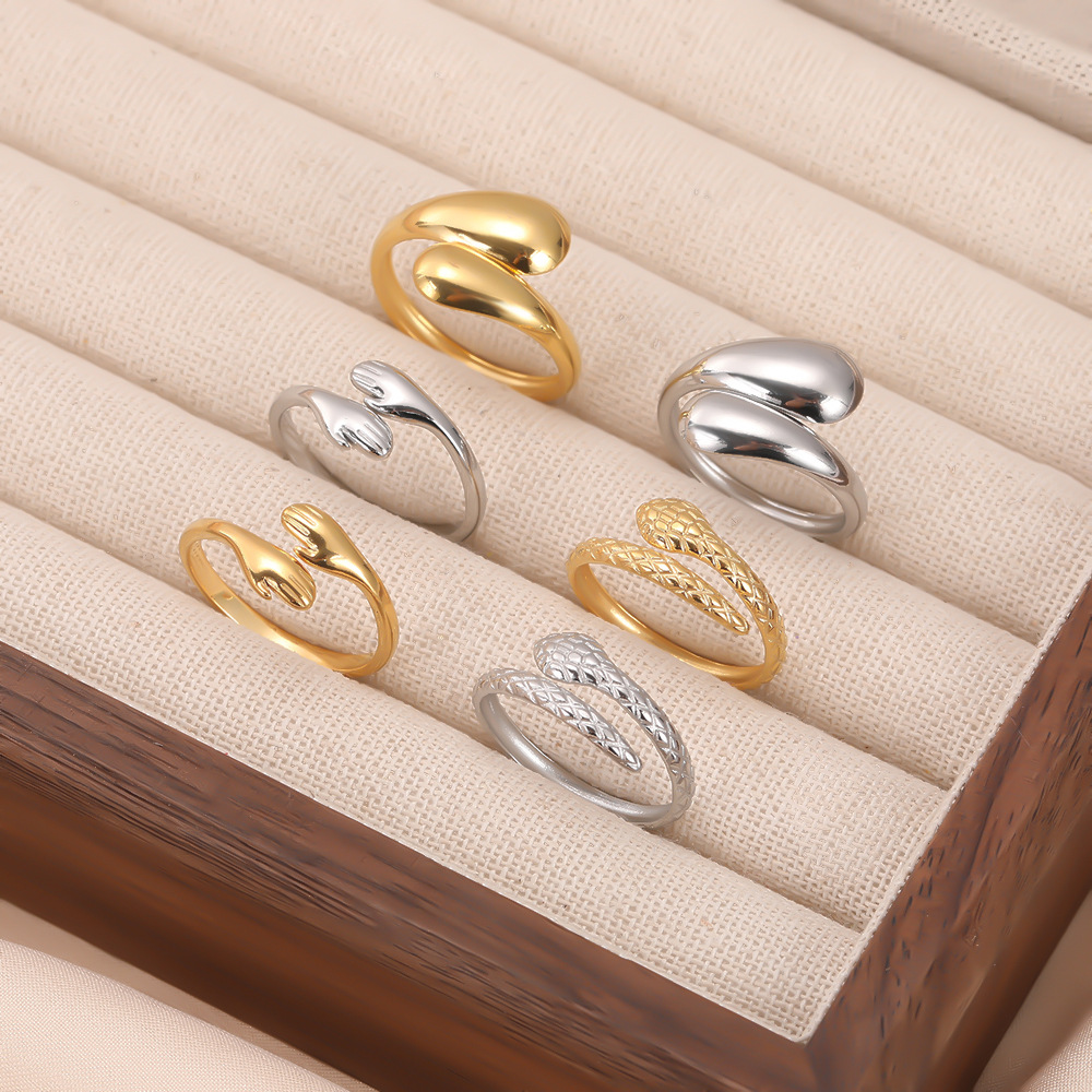 European and American Open Stainless Steel Ring Snake Embracing Water Drop Titanium Steel Ring Niche Design Elegant Versatile European Version