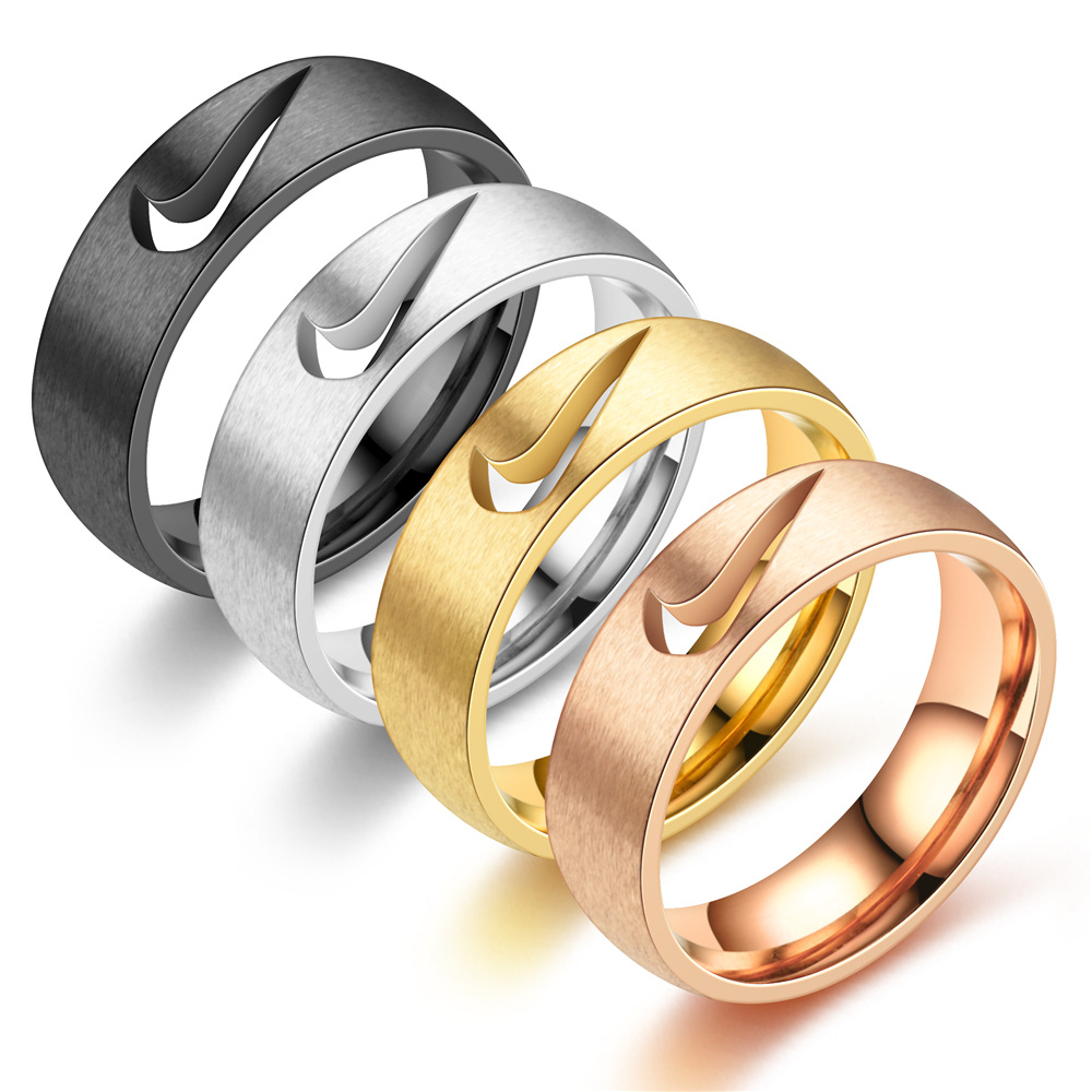 Cross-border European and American fashion personalized titanium steel hook cutting brushed ring men's and women's stainless steel jewelry factory wholesale