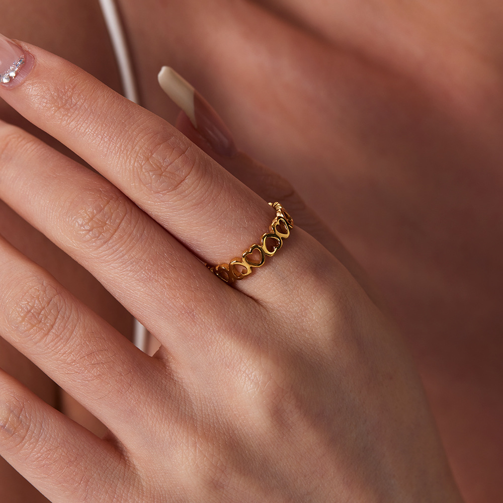 Titanium Steel Ring European and American Ins Style Stainless Steel Hollow Heart Couple Rings Non-Fading Jewelry for Women Couple Style