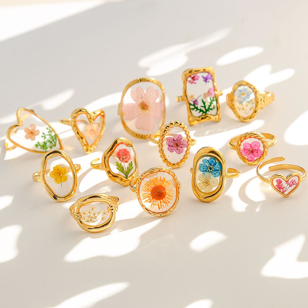 Handmade Dried Flowers, Real Flowers and Plants Series Stainless Steel Rings, European and American Export Popular Titanium Steel Rings