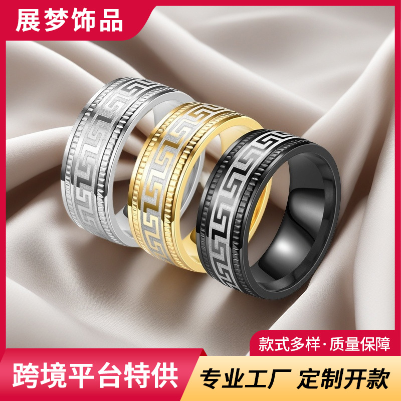 Amazon cross-border hot stainless steel ring wholesale hip-hop style all-match non-fading embossed Great Wall pattern ring for men
