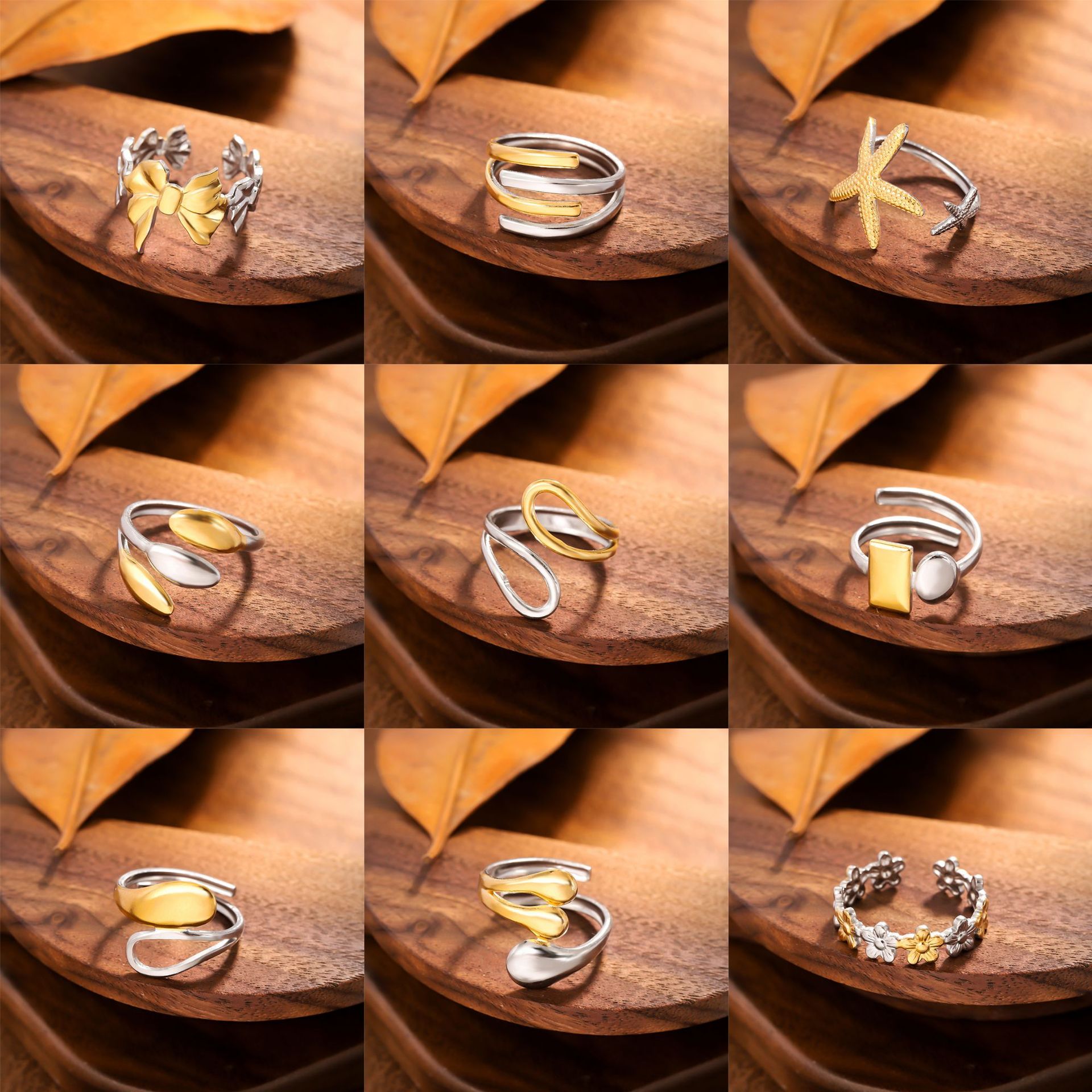 European and American Stainless Steel Flower Ring High-End Gold and Silver Color Matching Ring Line Ins Ring Jewelry Cross-Border Jewelry