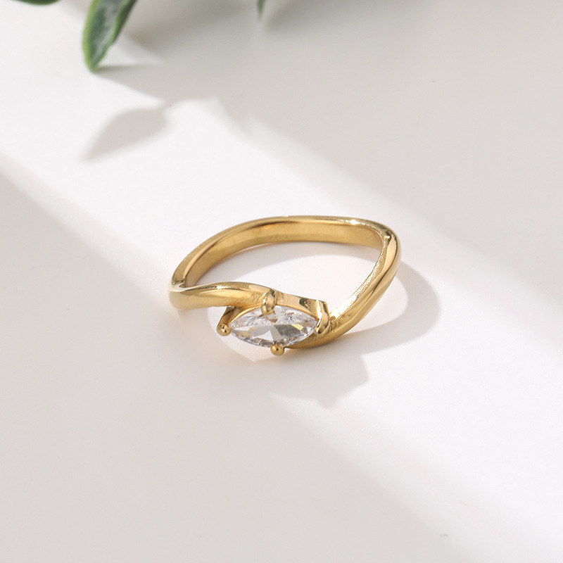 INS wind geometric titanium steel ring 18K gold stainless steel ring colored diamond opening ring fashion all-match hand ornaments for women