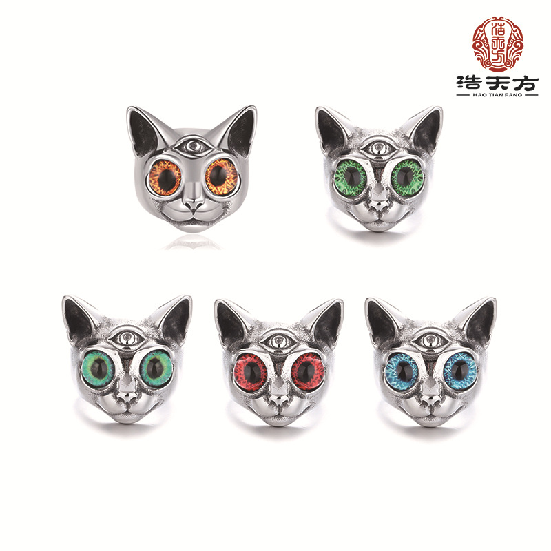 Titanium Steel Color-free Cats Ring Haifeng County Meilong Town Jewelry High-end Sense Niche Bracelet Cat Head Ring