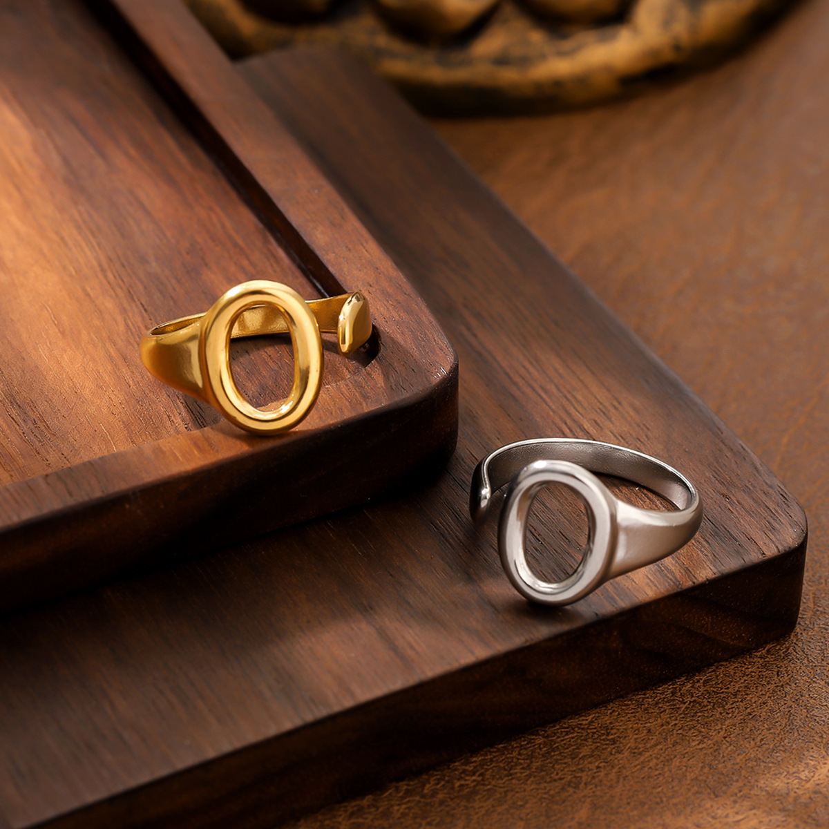 European and American fashion stainless steel smooth ring niche design high sense open titanium steel ring cross-border jewelry ring