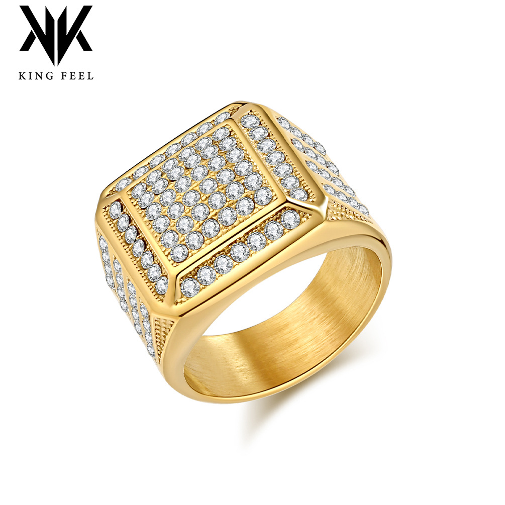 European and American Hip Hop Nightclub Ring Titanium Steel Plated 18K Gold Luxury Full Diamond Men's and Women's Finger Ring Personality Trendy Brand Hand Jewelry