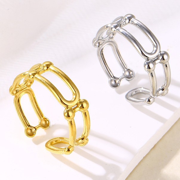 European and American Fashion Horseshoe-Shaped Titanium Steel Ring for Women Niche Design Elegant Trendy Stainless Steel U-Shaped Open Ring