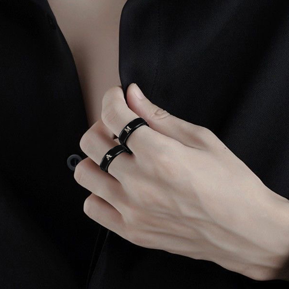 Cross-border hot sale 26 letters stamp ring fashion stainless steel ring European and American retro trendy style