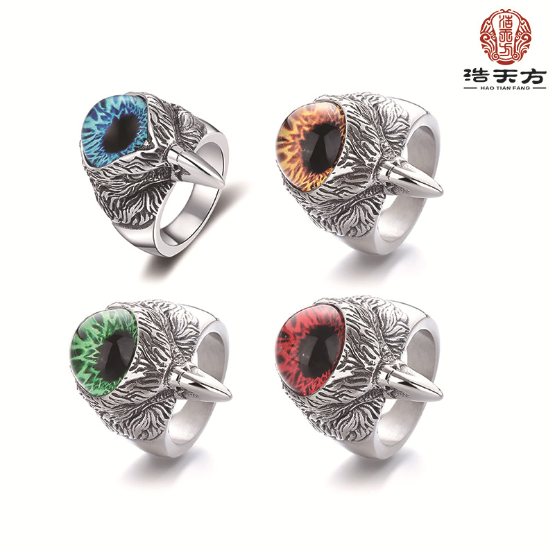 Titanium Steel Gem Ring Men's Haifeng Meilong Town Jewelry Devil's Eye Eagle Advanced Niche Ring