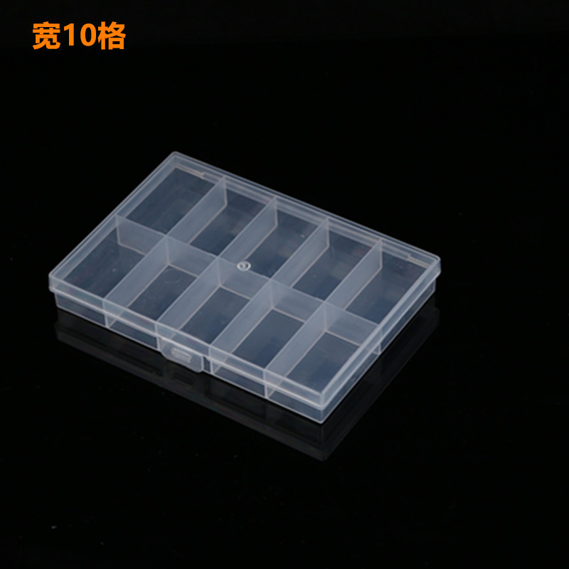 Fixed wide 10 grid transparent plastic storage box electronic components fishing gear beaded accessories packaging box jewelry finishing box