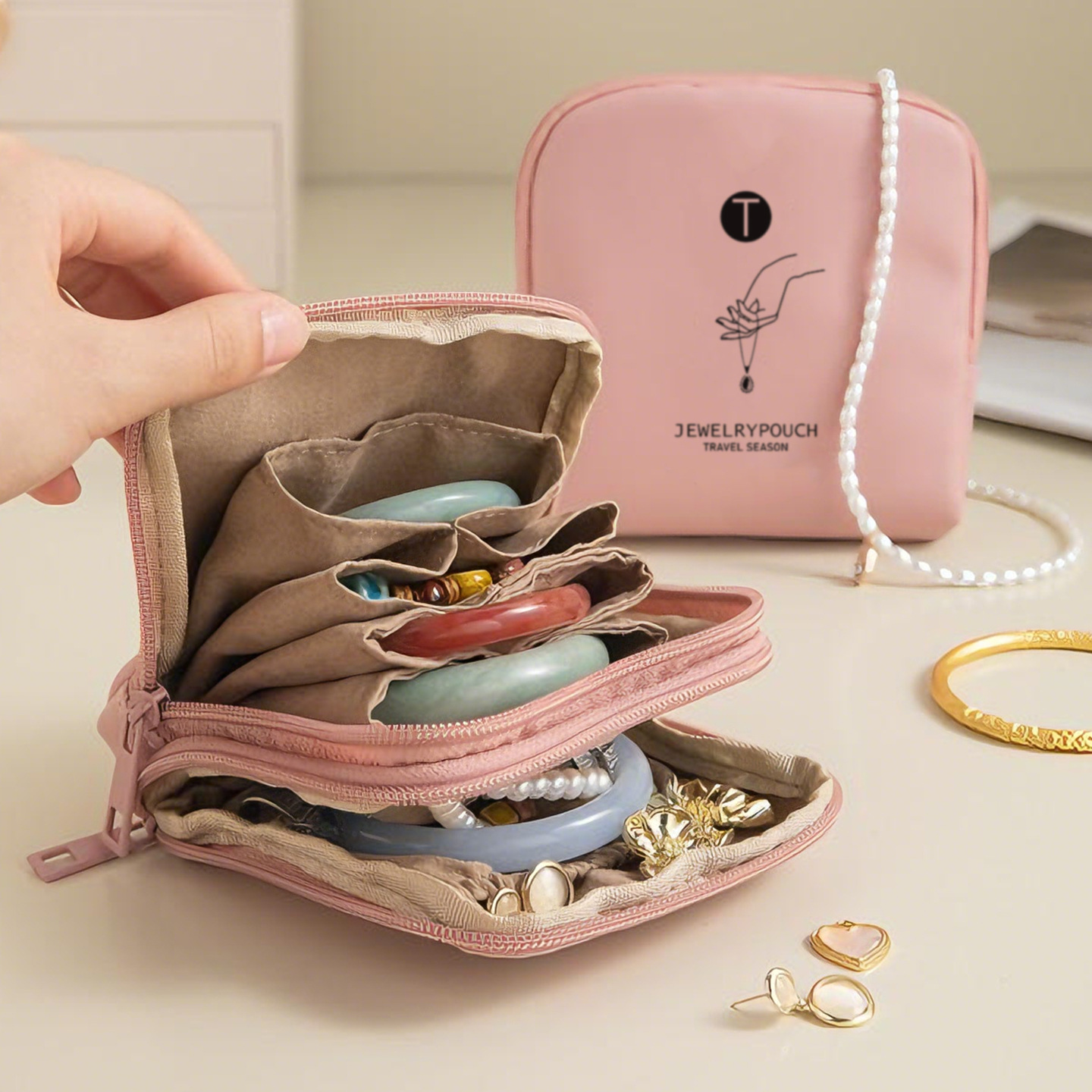 In-Stock Foldable Multi-Pocket Jewelry Pouch with a High-End Feel, Ultra-Portable Ring Storage Bag, Portable Earring and Necklace Jewelry Pouch