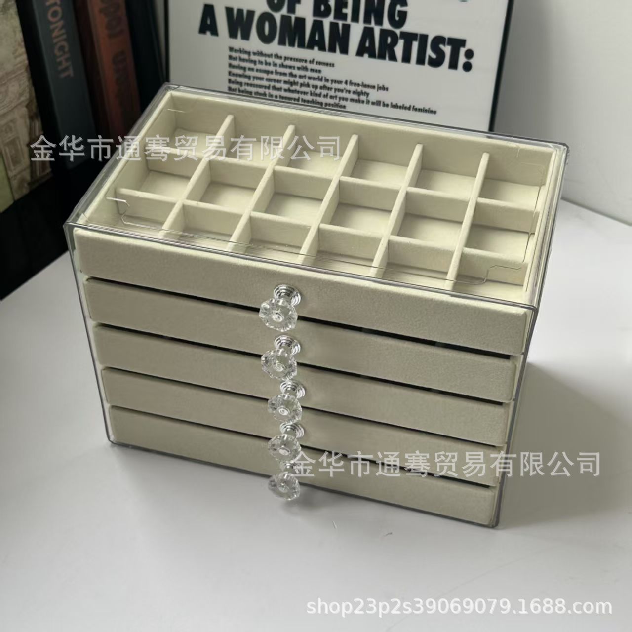 High-End 5-Layer Anti-Oxidation Drawer-Type Velvet Jewelry Box Desktop Acrylic Jewelry Storage Multi-Grids Classification and Organization