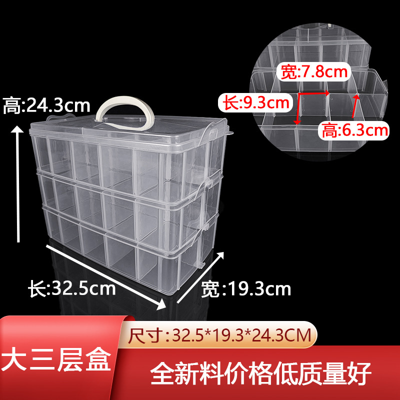 Extra-large Three-layer Removable 30-grid Transparent Plastic Finishing Box Jewelry Lego Hardware Tool with Handle Storage Box