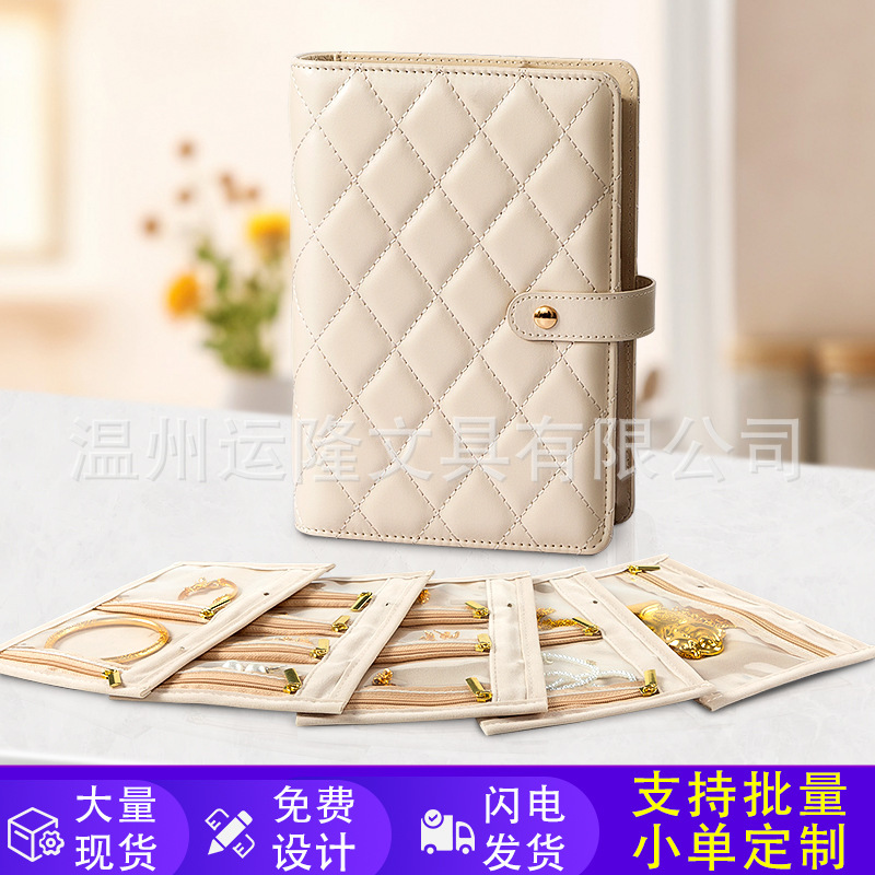 New Leather Loose-Leaf Jewelry Storage Book, Large-Capacity Jewelry Storage Bag, Earrings, Necklaces, Light Luxury Jewelry Bag Customization