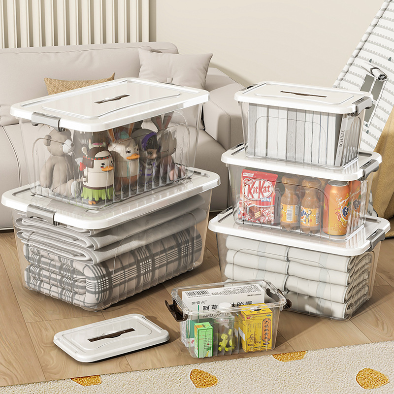 Large Capacity Plastic Transparent Storage Box Household Clothes Toy Organiser Multi-functional Thickened Storage Box with Handler