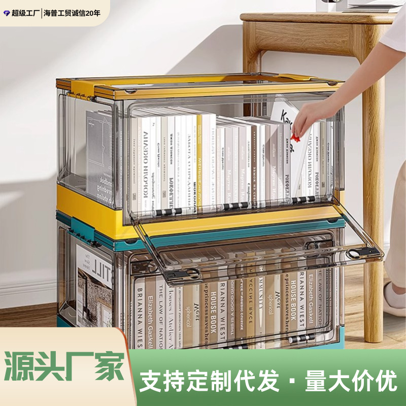 Large Plastic Folding Storage Box with Lid for Books Books Transparent Toy Pulley Tidy Box Book Box Storage Box