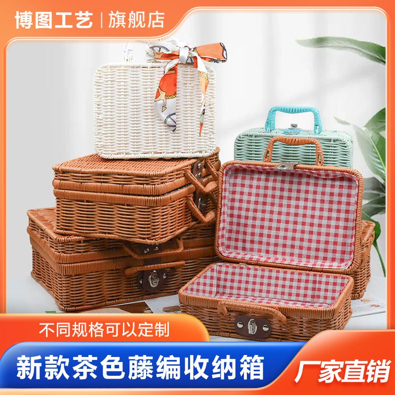 New brown rattan storage gift photography woven vintage suitcase wedding children's Sundries finishing box