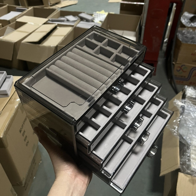 Multi-Layer Jewelry Box with Transparent Gray and Multiple Styles, Five-Layer Earrings, Earrings, Ring Storage, Drawer-Type Necklace, Bracelet Jewelry Box
