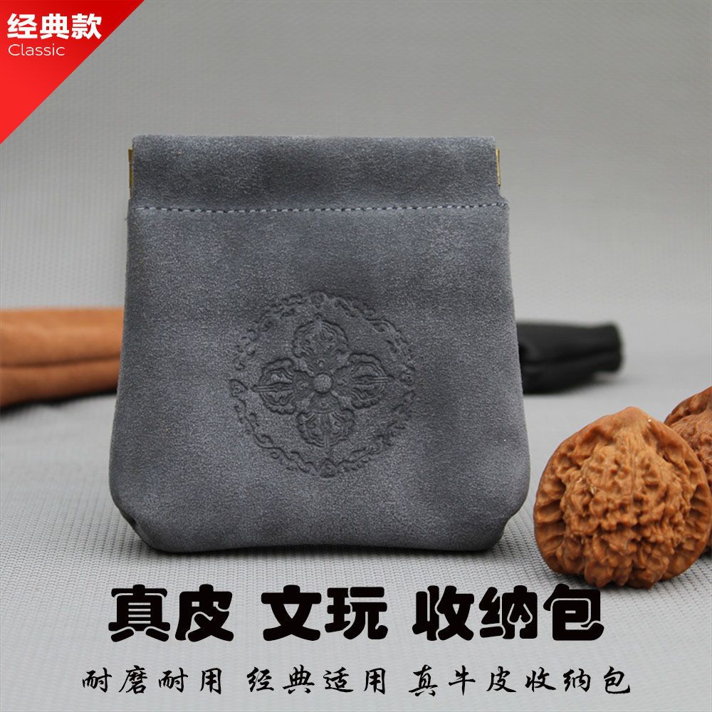 Wenwan Cowhide Bag Walnut Storage Bag Star and Moon Bodhi Lion Head Bracelet Pendant Jewelry Storage Protective Bag Jewelry
