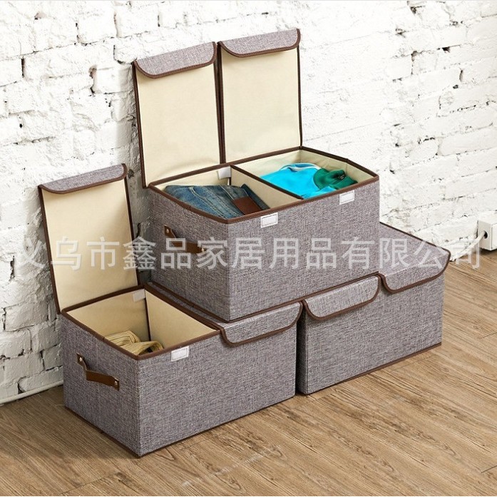 2024 Household Goods Storage Box Cotton and Linen Double-Lid Storage Box Ready Stock Gift Folding Storage Box