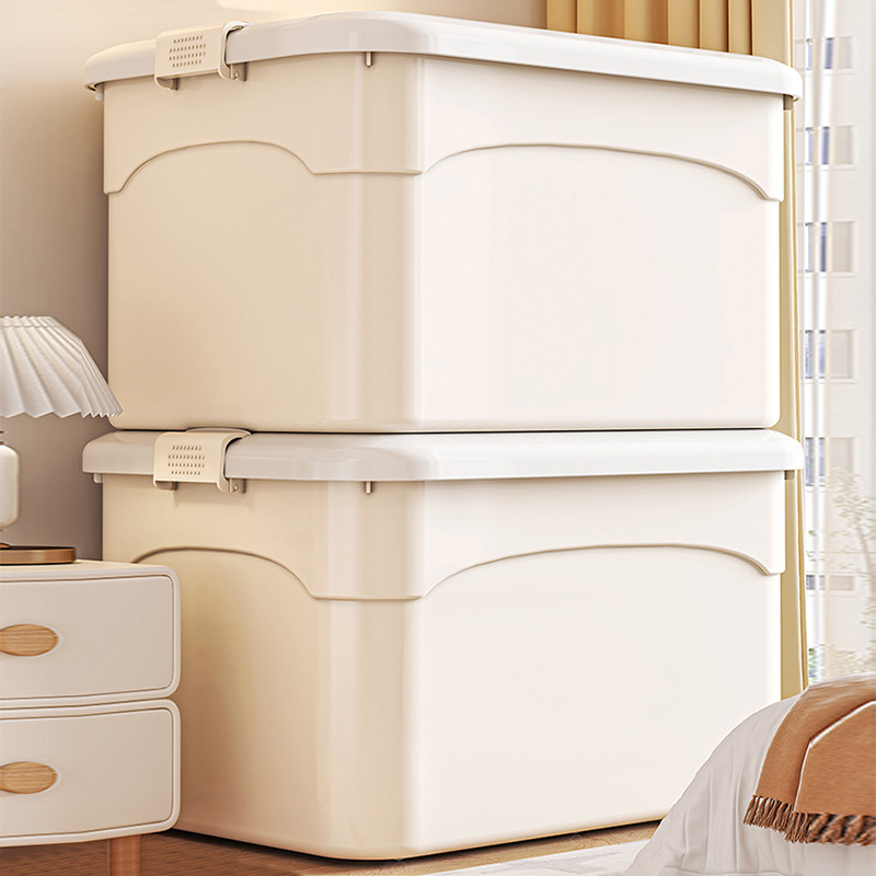 Household Cream-Style Plastic Storage Box with Lid, Thickened Large-Capacity Bedroom and Living Room Clothes and Pants Storage Box