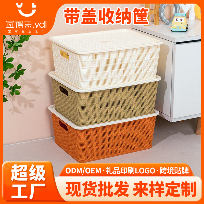 Plastic Imitation Rattan Storage Basket Desktop Storage Basket with Lid Kidsren's Toys Sundry Storage Basket Snack Storage Basket