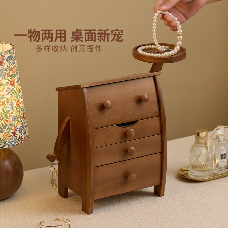 Popular Jewelry Storage Box Children's Jewelry Box Amazon Double-Layer Velvet Drawer with Lock Wooden Jewelry Box