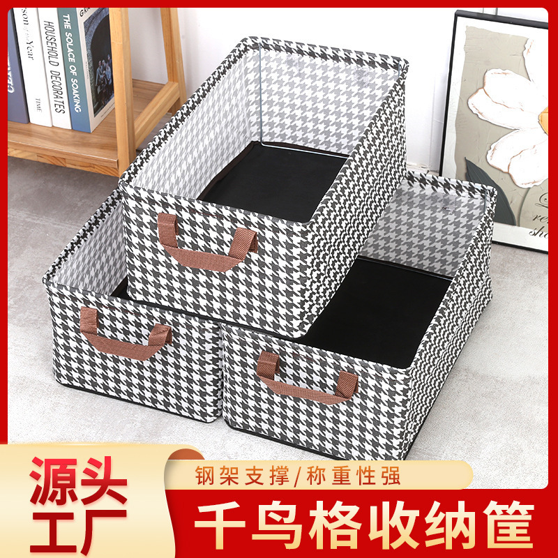 Korean-style houndstooth storage box large wardrobe storage box cotton and linen wardrobe storage box toy storage box factory