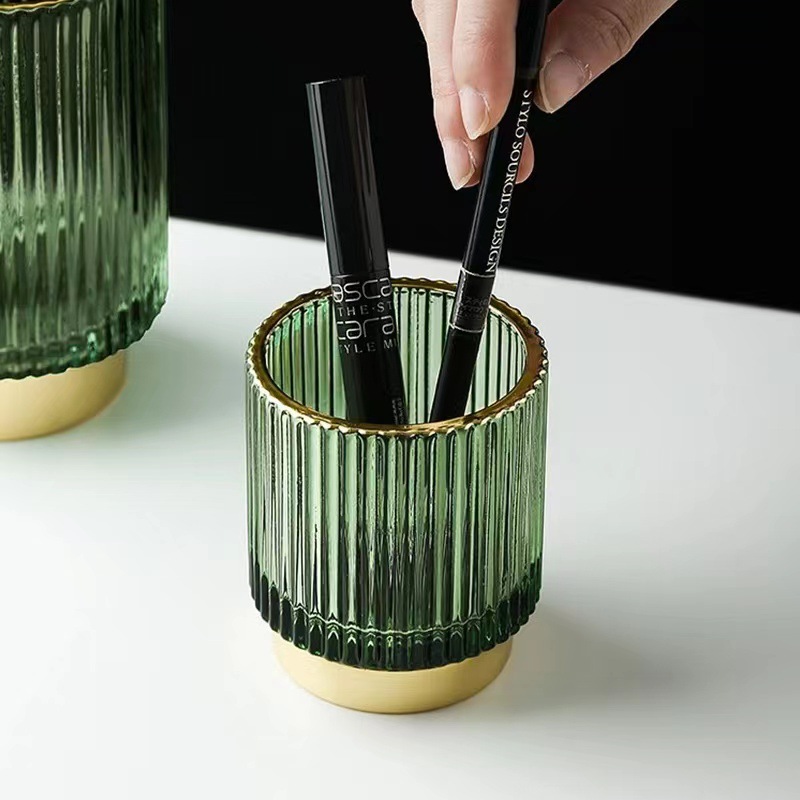 ins Light Luxury Glass Storage Bucket Pen Holder Storage Jar Cup Cosmetic Brush Bucket Storage Box Glass Candle Holder Windproof Lamp