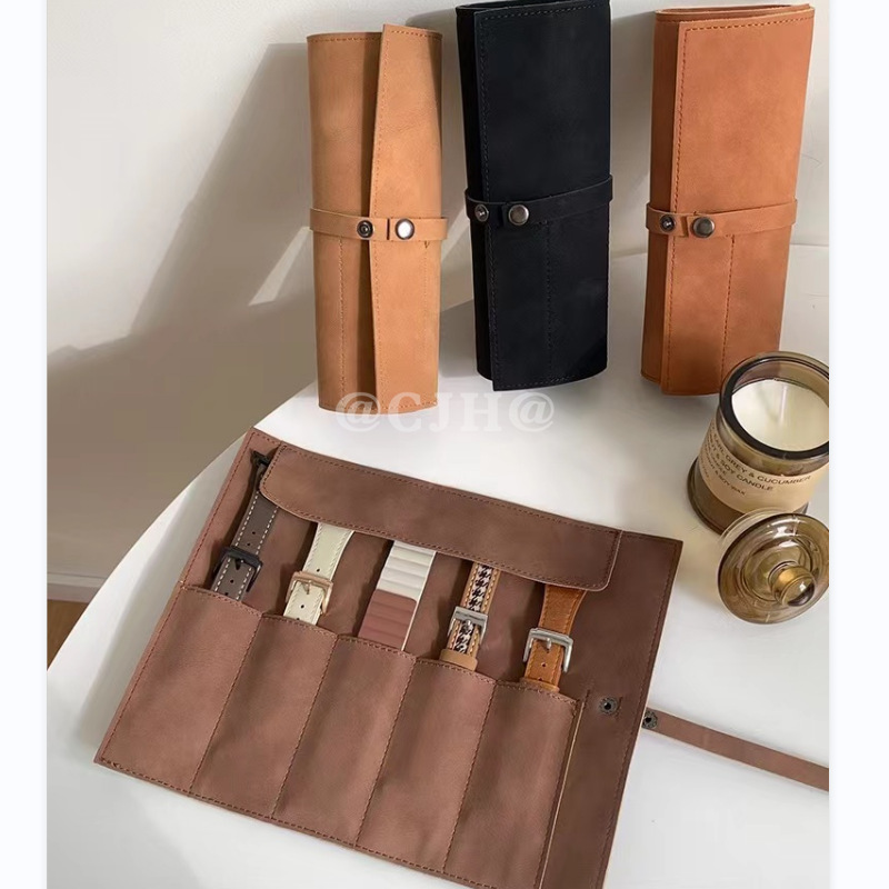 Spot Watch Strap Storage Bag Convenient Korean Style Frosted Leather PU Roll Bag for iWatch Watch Organizer Bag