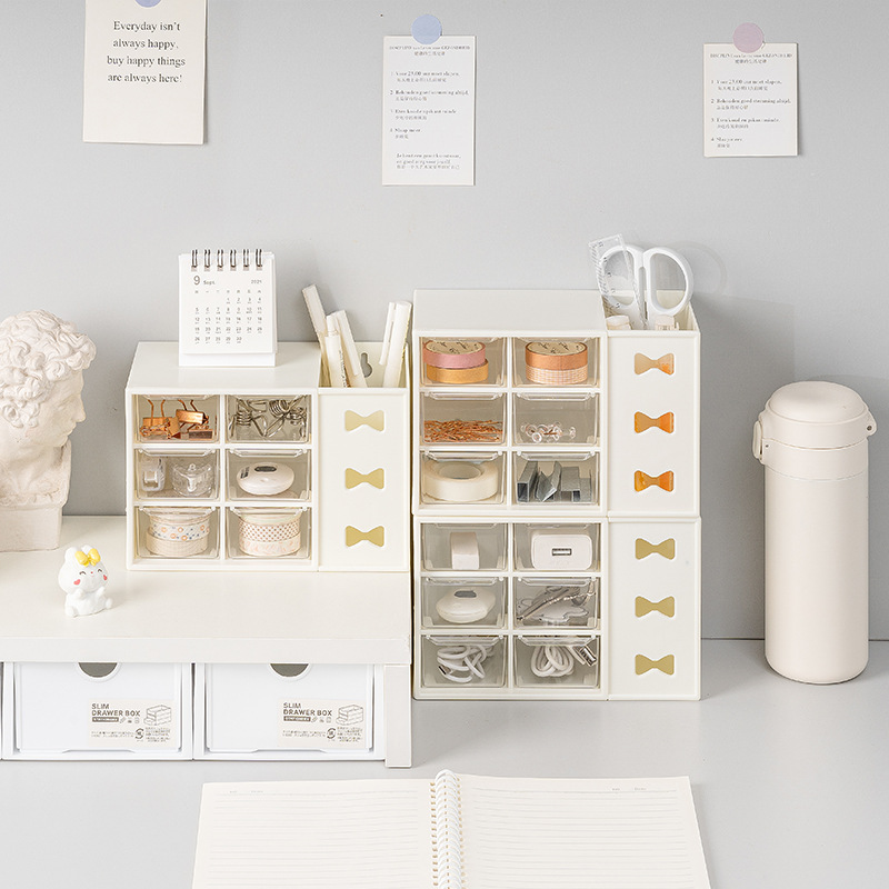 Bow Six-Palace Pen Holder Drawer-type Storage Rack Dust-proof Sub-compartment Student Dormitory Desktop Storage Finishing Box