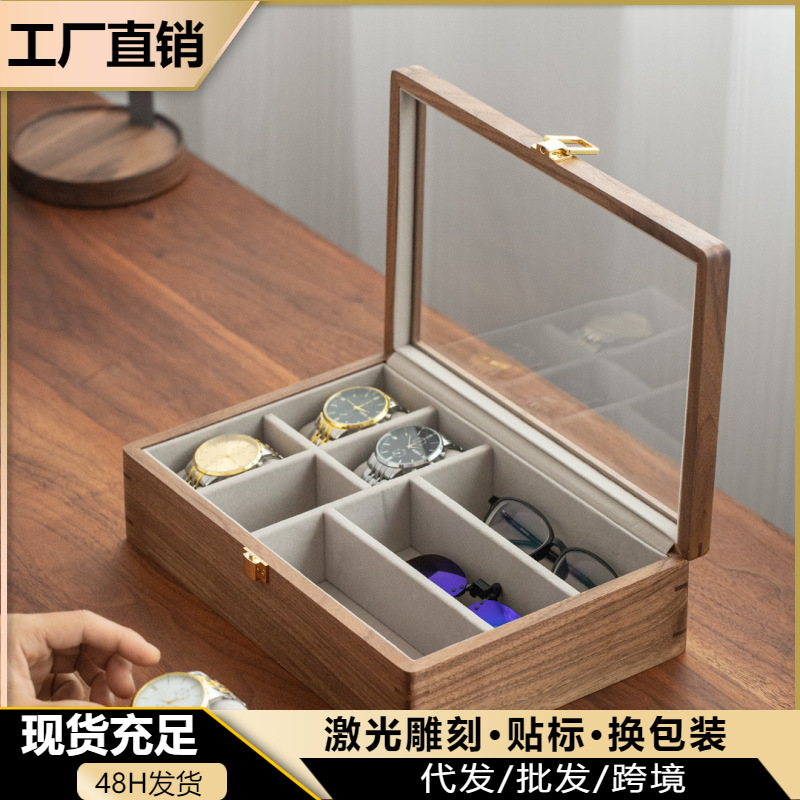Black Walnut Glasses Watch Storage Box Household High-End Wooden Accessible Luxury Watch Famous Watch Large Display Display
