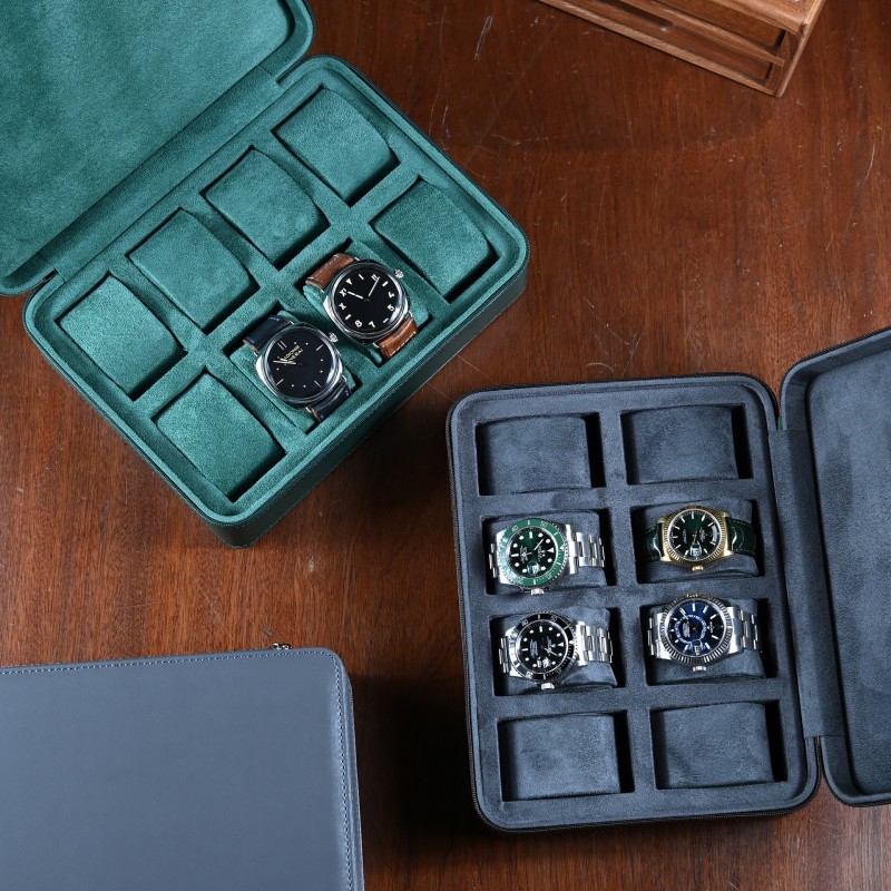 Eight-Slot Microfiber Leather Watch Storage Box Portable Business Trip Genuine Leather Watch Mechanical Watch Storage Bag Jewelry Box