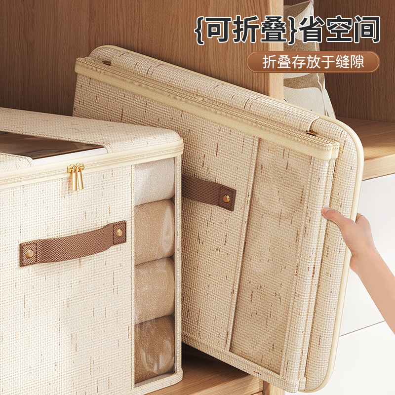 Tianshan Hemp Double Window Zipper Box Quilt Storage Box Household Fabric Organizing Storage Box Large Storage Box Wholesale