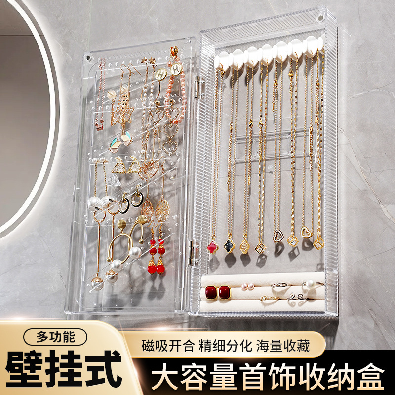 Transparent Dust-Proof Necklace Earring Display Stand Earring Storage Box Necklace Stand Household Hanging Punch-Free Jewelry Box