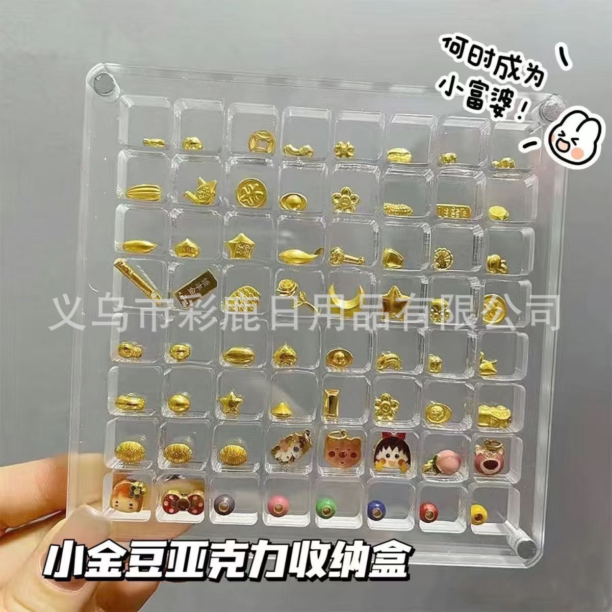 Small Gold Bean Storage Box Acrylic Transparent Jewelry Decorative Ornaments Gold Shop Display Cabinet Hand Jewelry Organizing Shells